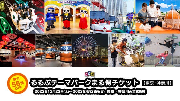JTBグループで旅行・ライフスタイル情報を提供する株式会社JTBパブリッシング(東京都新宿区、代表取締役 社長執行役員:盛崎宏行)は、CAセガジョイポリス株式会社(東京都品川区、代表取締役:吉本武)と協業し、東京・神奈川で人気の9施設のチケットをセットにした電子チケット『るるぶ テーマパークまる得チケット 【東京・神奈川】』を2022年12 月22日(木)から期間限定で発売します。