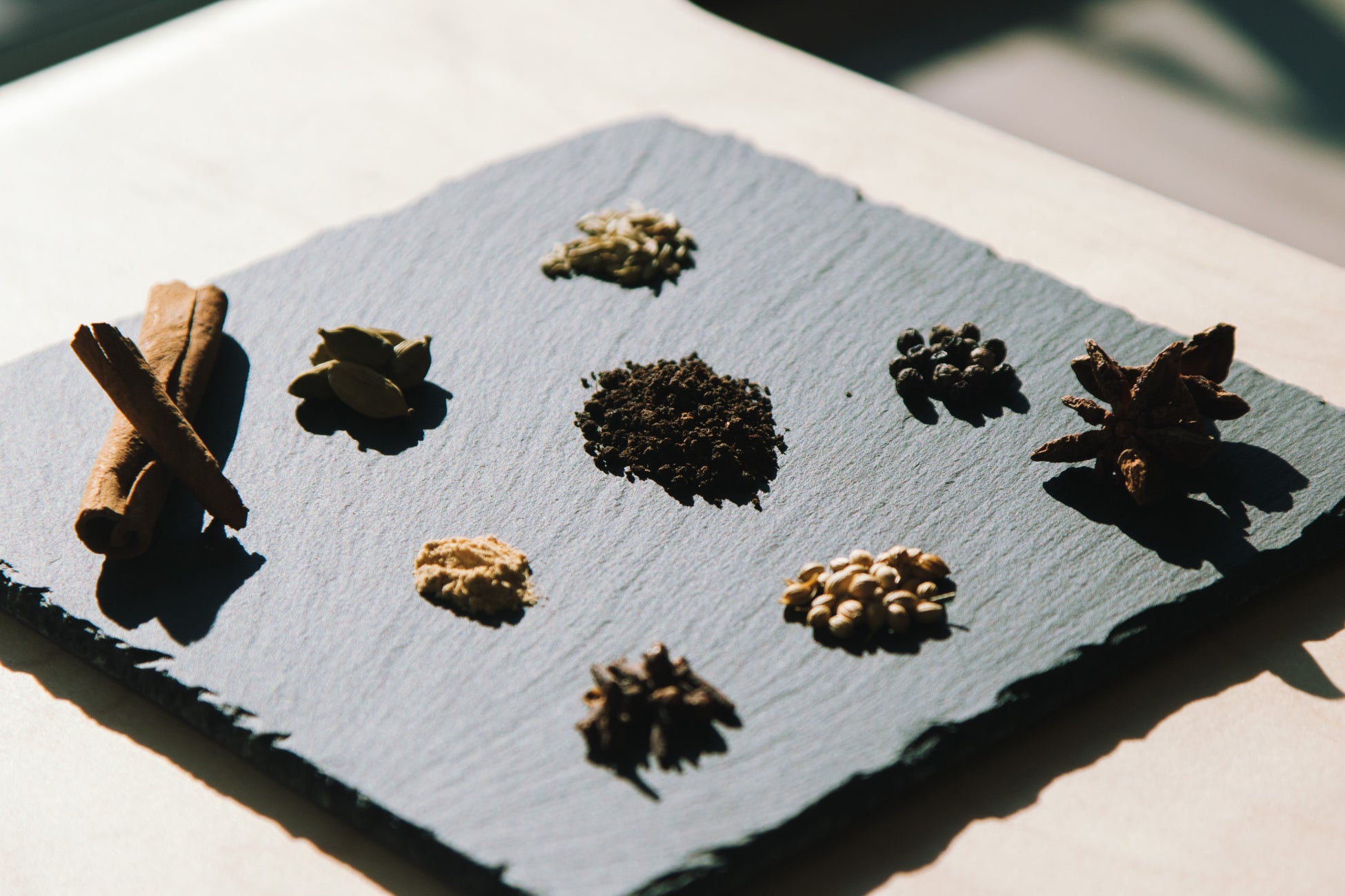 本格チャイを作るために必要な8種類のホールスパイスと茶葉をパッキングしました。