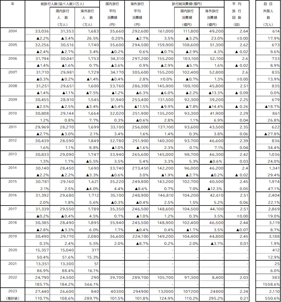 国内旅行消費額は10兆7,200億円(前年比110.2%、2019年比96.4%)