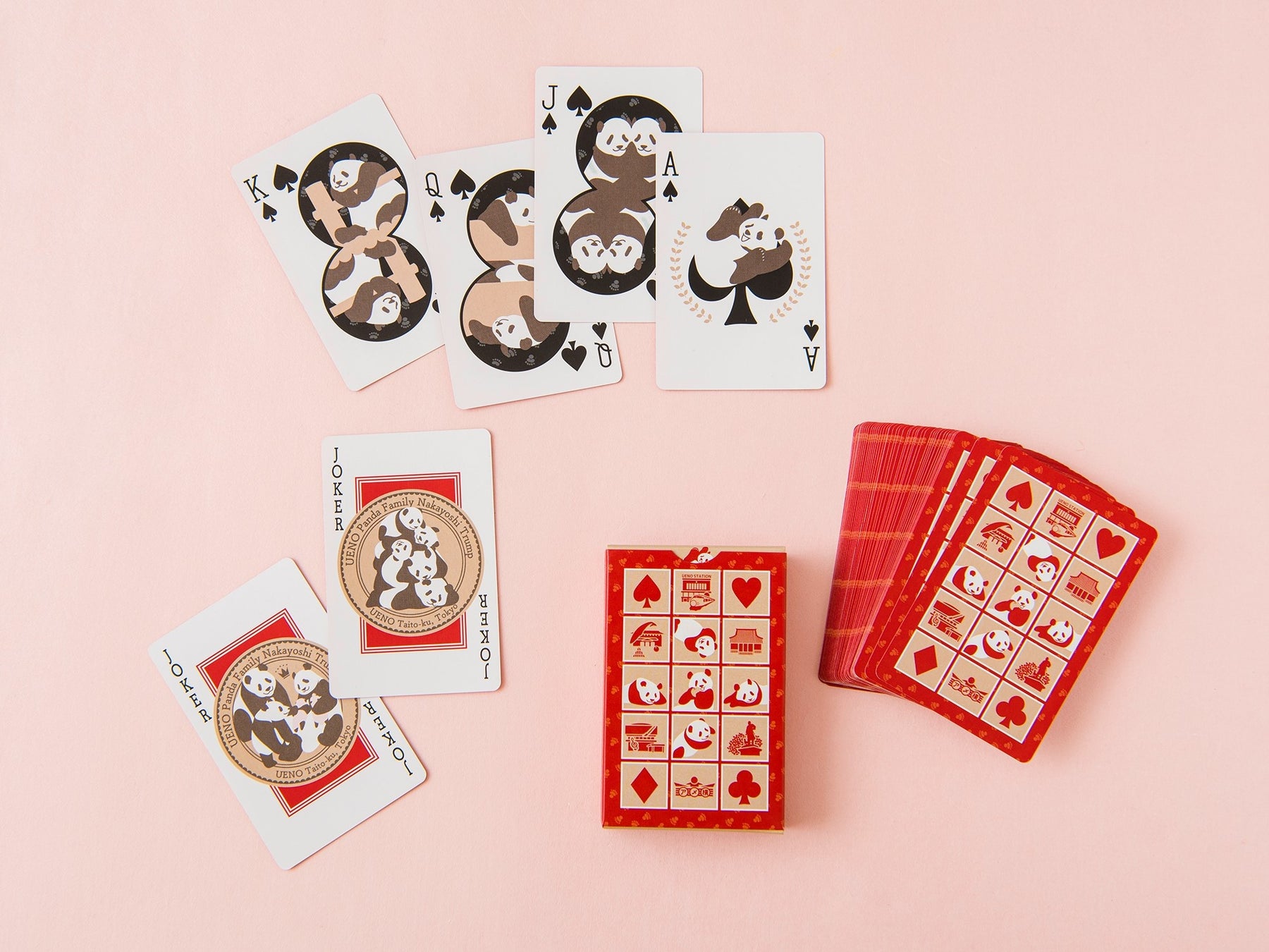 いつでも皆で仲良く遊んで楽しめるように、という思いを込めてトランプを作りました。カードはもちろん、可愛いボックスも上野パンダファミリーをモチーフにしたオリジナルデザインです。お家でも外出先や旅行先でも、子供から大人までみんなで楽しめるのでギフトにもオススメです。サイズ:外箱 横59×縦91×高さ19mm、カード 横58×縦89mm