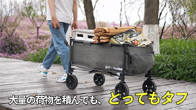大容量のためキャンプなどのアウトドアで、折りたたみ式テーブルや椅子、食材、飲み物などを一度に運ぶことができます!