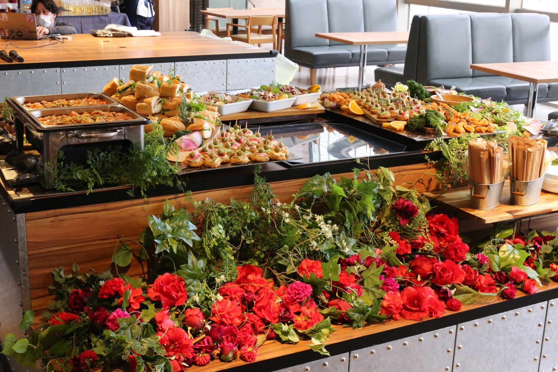 歓談タイムではケータリングでの食事を楽しみながら、各プロジェクトの情報交換等、参加者同士での交流が盛んに行われていました。また、会場内にはイラストボードなどの展示を行うブースも設置され、13組の参加者が様々なNFTプロジェクトのアート展示を行い、オフ会に花を添えてくださいました。