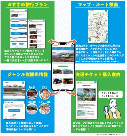 本サービスは、株式会社西武ホールディングス(本社:東京都豊島区、代表取締役社長:後藤 高志)が運営するWEBサイト上で、「旅行プランの作成/マップ・ルート案内/チケット購入案内/観光情報の確認」等、観光に役立つ各種機能をご利用いただけるサービスです。本サービスを通し、秩父市・横瀬町の観光体験の向上、観光客のリピート率向上への寄与を目指します。