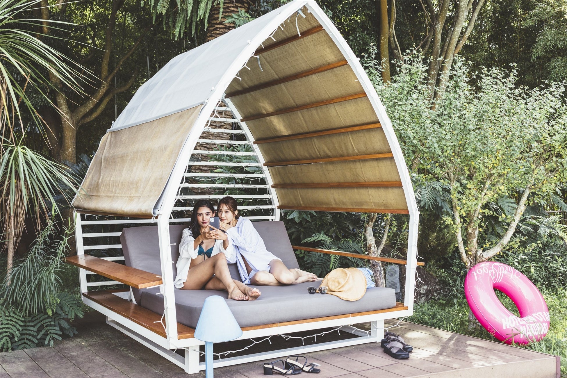 非日常の時間をより楽しみたいという方におすすめなのが、限定2棟のプレミアムシート“HAUOLI(ハウオリ)”です。プールサイドに佇む2人だけのプライベート空間では、まるで海外セレブが楽しむような優雅なひと時をお過ごしいただけます。
