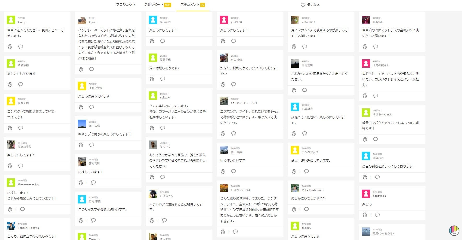 (▲Makuakeユーザーコメント欄より一部抜粋)