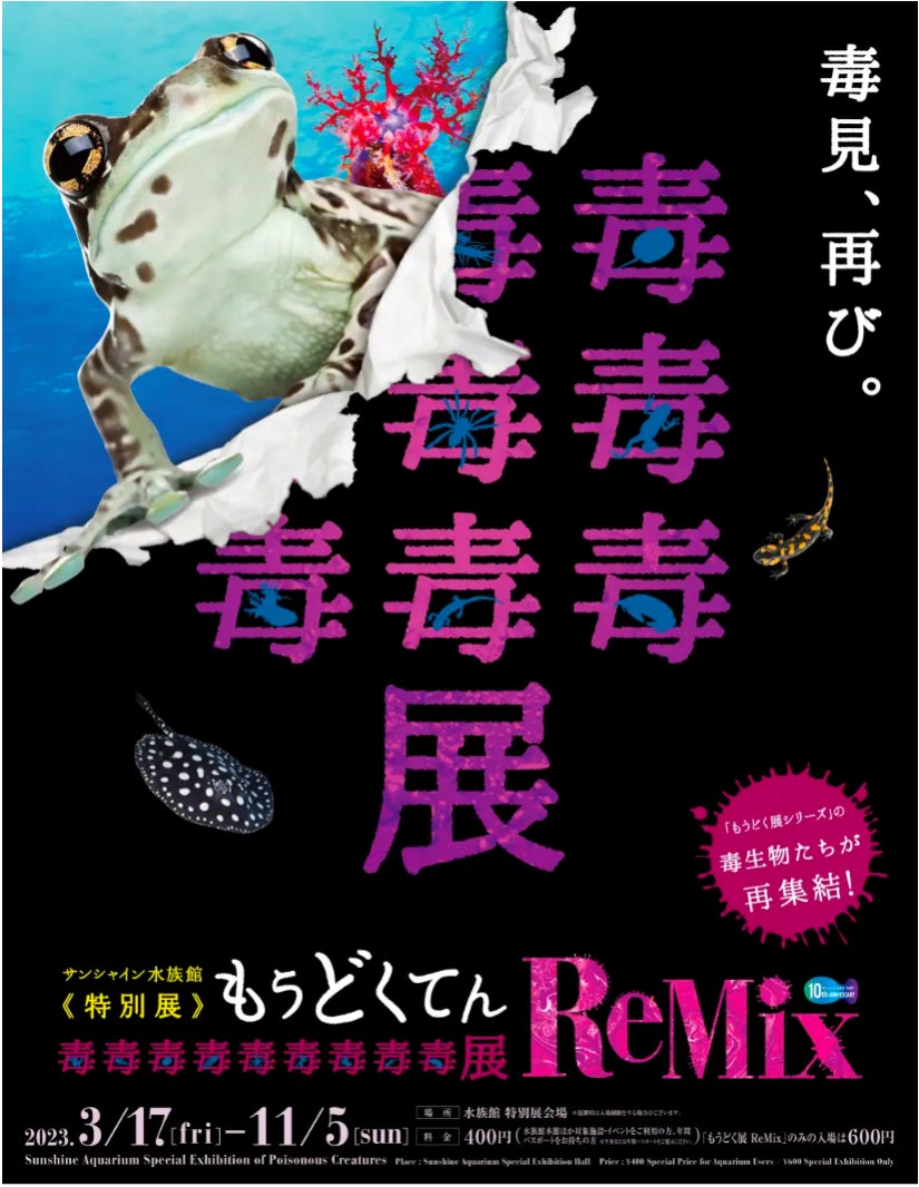 「毒毒毒毒毒毒毒毒毒展(もうどく展)」シリーズは、2013年からスタートしたサンシャイン水族館の特別展が10年目を迎えることを記念して実施された「特別展No.1総選挙2022」で、“もう一度見たい” と多くの投票があった大人気シリーズの特別展になります。