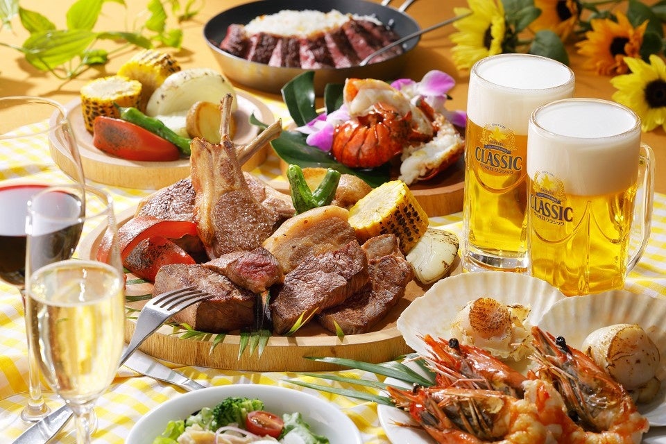 メニューにはラム・牛ロース・豚肩ロースなど数種類のお肉が楽しめる「ジンギスカン&BBQセット」をはじめ、オマール海老や帆立貝などの海鮮メニューもラインナップした「BBQプレミアムセット」、お肉に海鮮、おつまみに飲み放題もついた「BBQパーティーセット」など、5つのセットをご用意しました。
