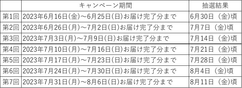 2023年6月12日(月)0:00~7月30日(日)23:59の間にご注文、8月6日(日)お届け完了分まで