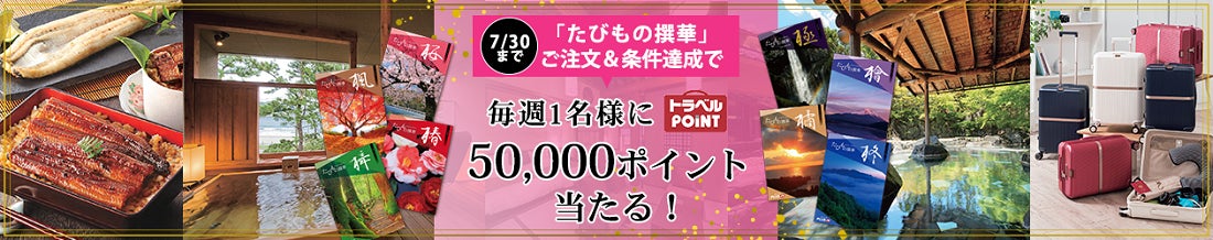 旅をテーマにしたショッピングサイト「JTBショッピング」では、2023年7月30日(日)まで、「たびもの撰華」のリニューアルを記念して、抽選で毎週1名様にトラベルポイント50,000ポイント、10名様にトラベルポイント1,000ポイントをプレゼントするキャンペーンを開催中です。