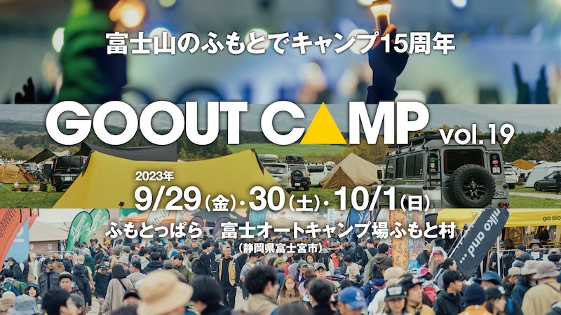 嵐の第1回目の開催から、コロナ禍を経て、今回で19回目の「GO OUT CAMP vol.19」は、2023年9月29日(金)〜10月1日(日)の3日間、「ふもとっぱら(静岡県富士宮市)」にて開催です!