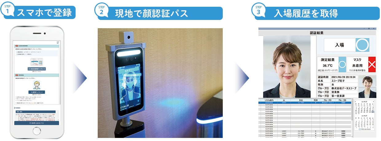 建設現場やイベント会場といった多くの人が出入りする環境でも行列をつくらずにスピーディかつ正確な顔認証を行います。