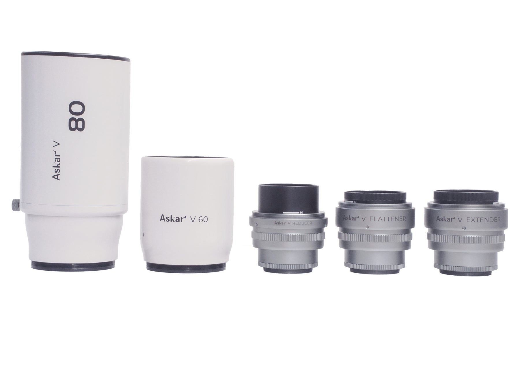 ・同梱されているV用に開発されたⅤレデューサー、Ⅴフラットナー、Ⅴエクステンダーを組み替えることで、60mm対物レンズでは270mm F4.5、360mm F6.0、446mm F7.43、80mm対物レンズでは384mm F4.8、495mm F6.18、600mm F7.5の合計6通りの焦点距離での撮影が可能です。