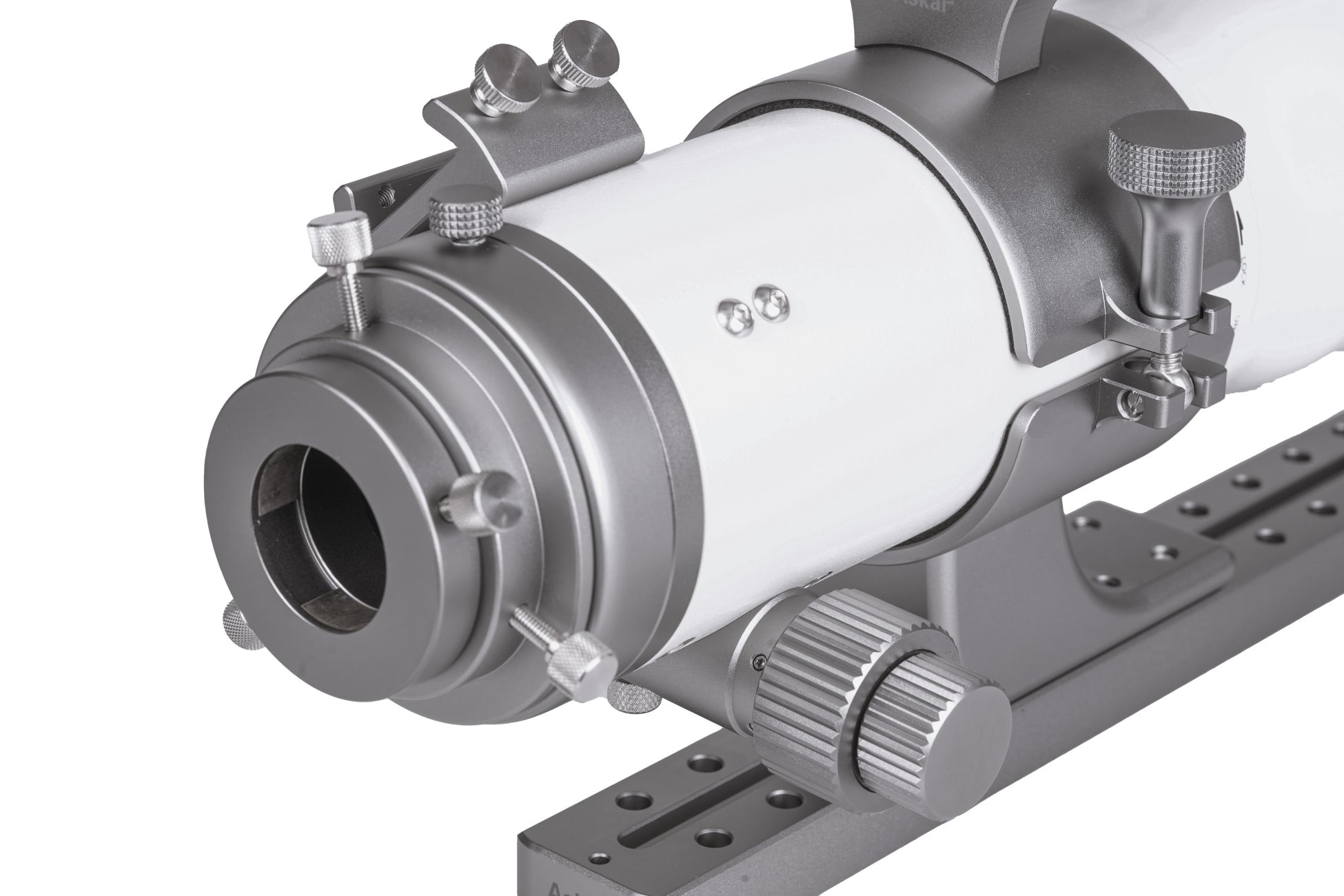 ・補正レンズの伸縮インナーチューブには、あらかじめ60mm用と80mm用の位置が設定されています。インナーチューブは工具なしで伸縮し、指定位置でロックできるので、対物レンズに合わせた組み立てと組み換えが容易です。
