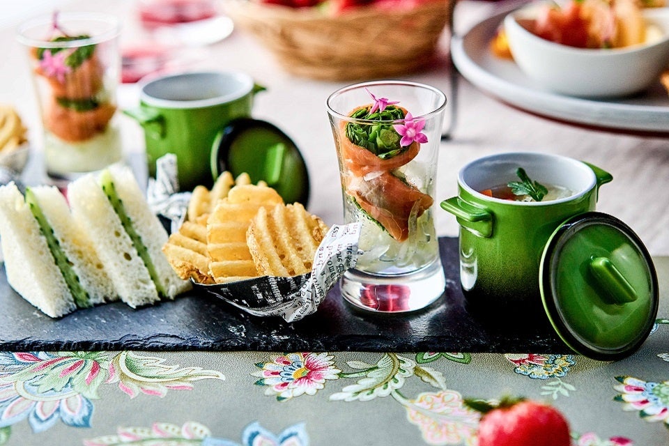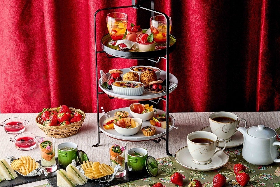 季節ごとにテーマを変えて提供しているアフタヌーンティー。今回は、ジューシーで甘酸っぱいいちごを使用したメニューに加え、アフタヌーンティーには欠かせないキュウリのサンドイッチやベジタブルスープが並んだウエルカムプレートが初登場します。まずは、おもてなしの気持ちを込めたプレートとお席からの景色をお楽しみください。