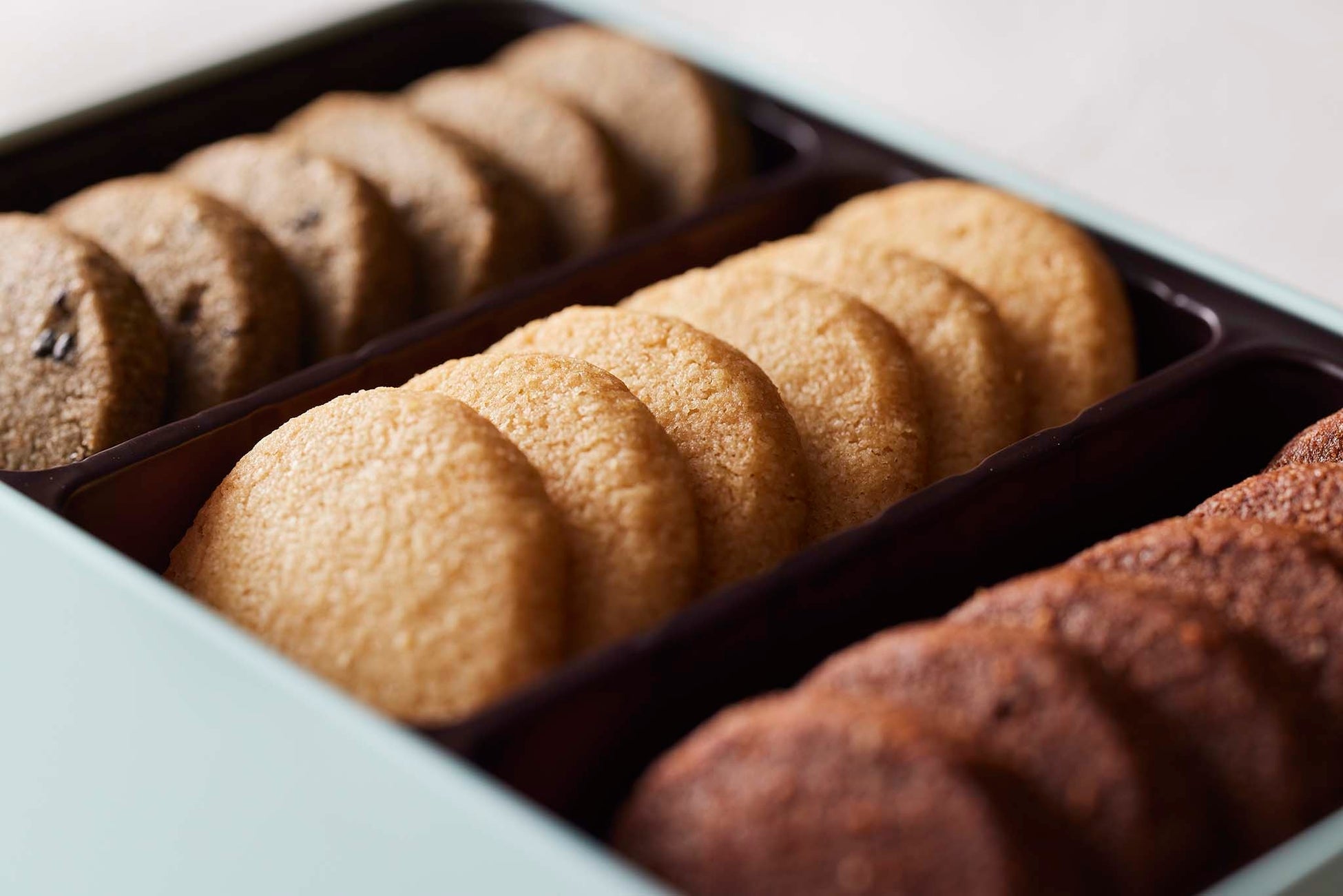 また、砂糖は北海道産のてんさい糖を使用しております。フレーバーはプレーン・チョコ・ごまの3種類。米粉のやさしい風味ながら3種類の味の特徴はしっかりと、食感にもこだわりました。クッキーはフレーバーごとに包装し、オリジナルデザインの缶に入れたギフト仕様になっておりますので、手土産やプレゼントなどに広くご活用いただけます。