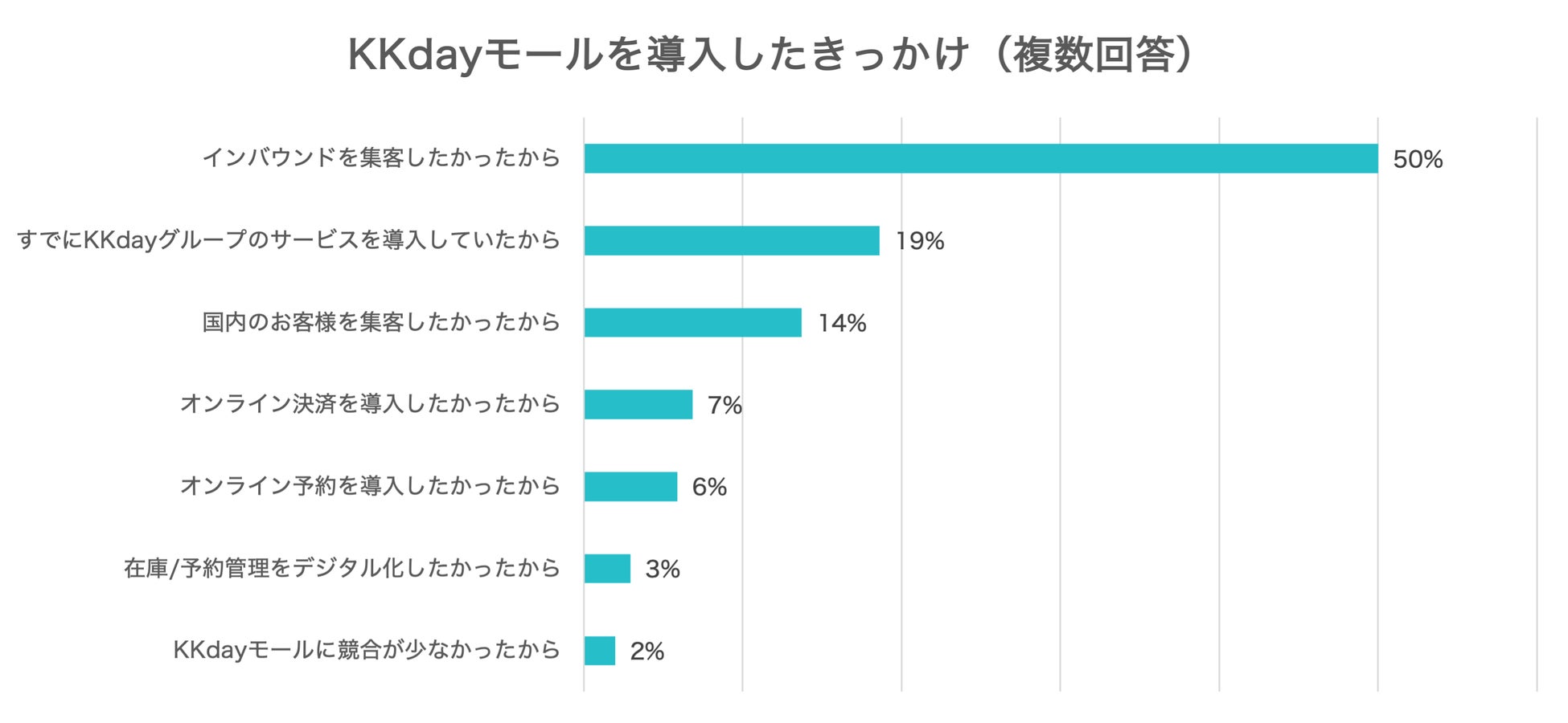 KKdayモールを導入したきっかけは、「インバウンドを集客したかったから」が50%を占める結果となりました。