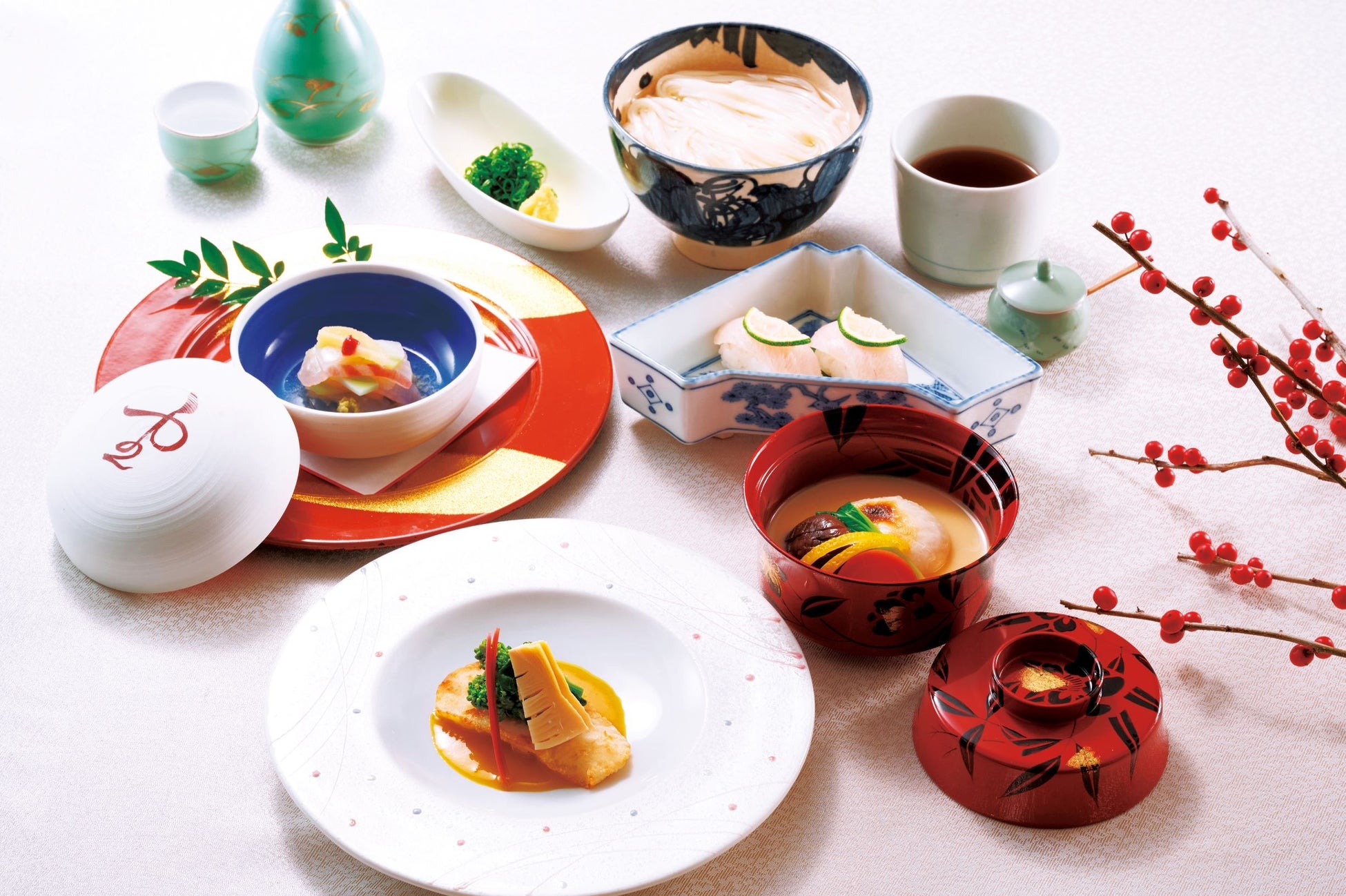 フレンチレストラン「ル シエール」では、魚料理に冬の味覚である“鱈”のブランダードを、日本料理「四季亭」では、華やかな新年にふさわしい“白味噌仕立て雑煮椀”のほか、“筍”、“菜花”など春の気配も感じる会席料理を、中国料理「皇苑」では、北京ダック、上海蟹ソースなど豪華な食材を味わえるコース料理をご用意いたしました。