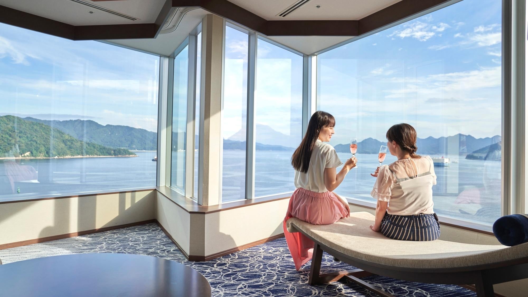 コンセプトは「広島 瀬戸内海×至福のハーモニー」。海辺の解放感と一体感を活かし、ふりそそぐ太陽の光や移りゆく時間とともに表情を変える瀬戸内海をモチーフにしたデザインです。広々としたお部屋で、グループでのご宿泊にもおすすめです。