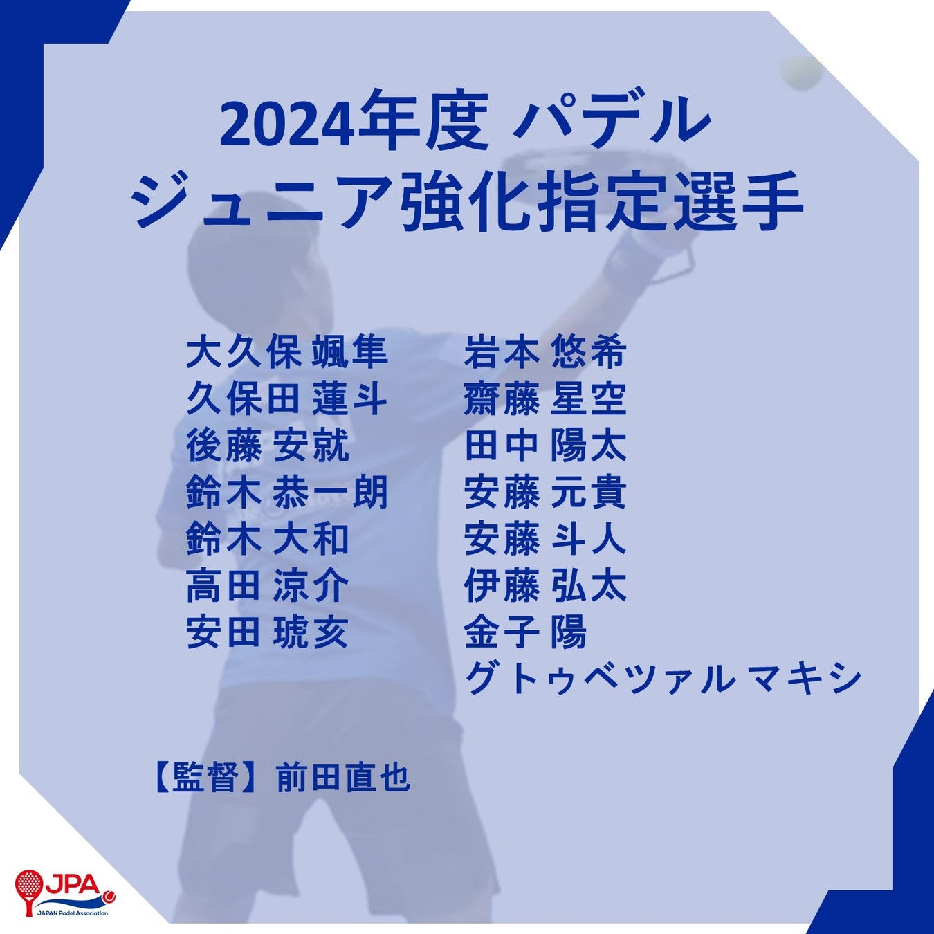 この度発表するジュニア強化指定選手は、オンコートトレーニング・フィジカルトレーニング・メンタルトレーニングを含む日本パデル協会が提供する強化プログラムに参加し、2024年1月~12月の期間で活動いたします。