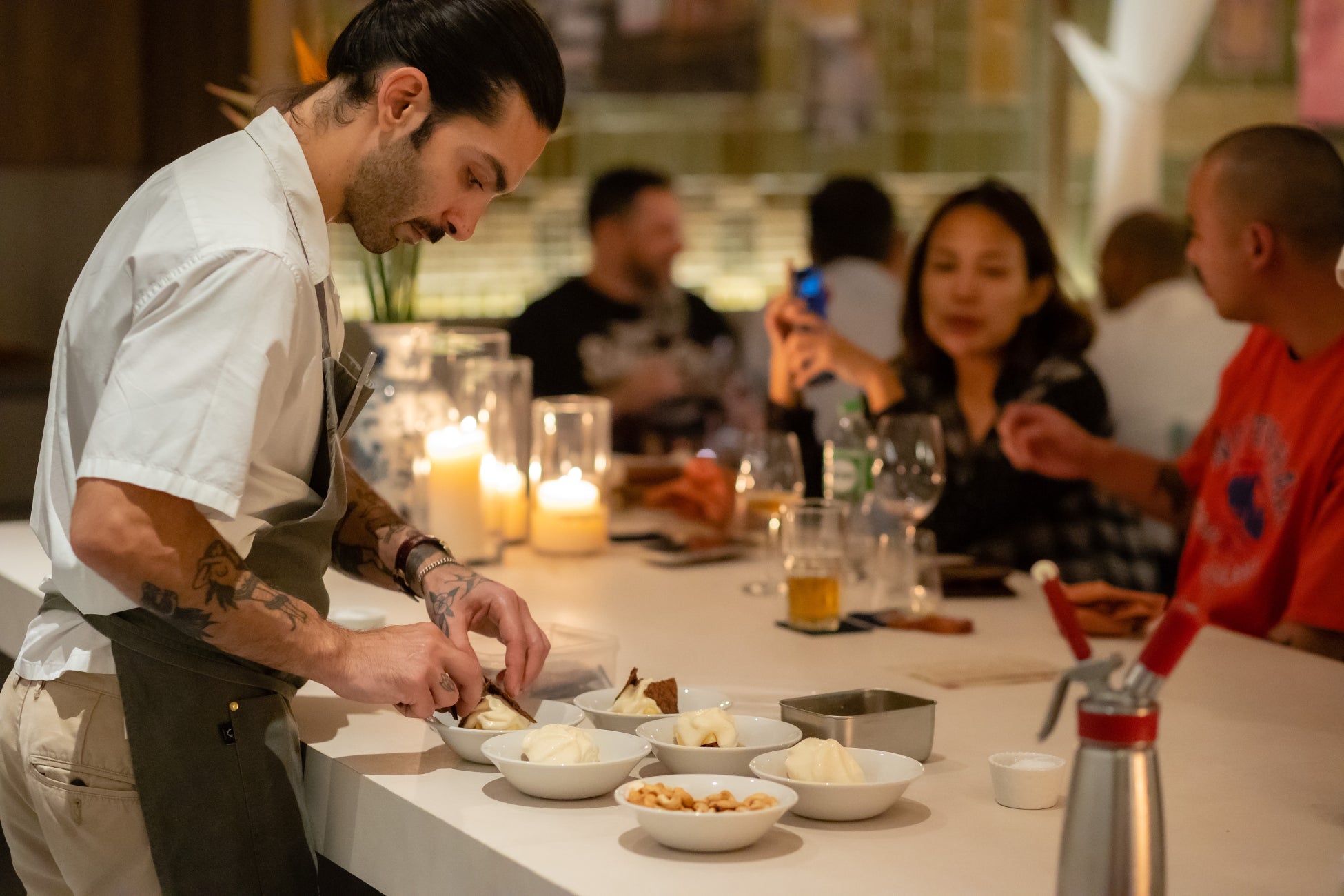 カタラス氏は、パリで修業を重ねた後、「世界のベスト50レストラン」で1位に選出されたこともあるコペンハーゲンの名店「ゼラニウム」などを経て、アムステルダムに自らのレストラン「ヴァンデルヴェーン」を2018年にオープンしました。北欧と地中海料理を融合させた独自のスタイルで高い評価を獲得し、開店から僅か2年でミシュラン一つ星を獲得するという偉業を成し遂げています。今回の特別メニューは、そんなシェフ・ジョージの世界観を存分に堪能いただける内容となっています。さらに、「ヴァンデルヴェーン」のソムリエが厳選したワインによるお料理とのペアリングもご提供します。