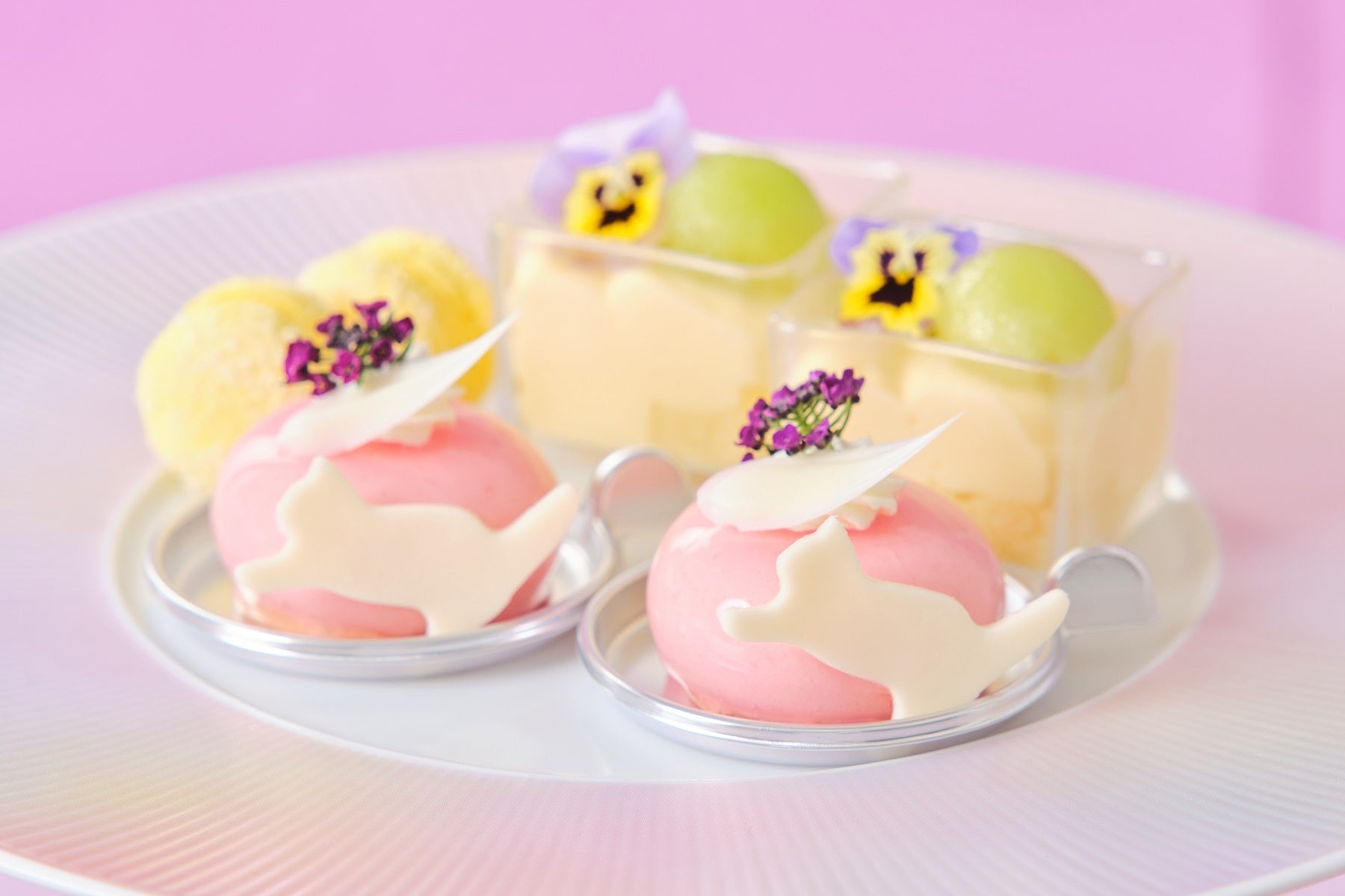 (中段)桃とラズベリーのムース/ メロンのトライフル/パッションマンゴーマカロン