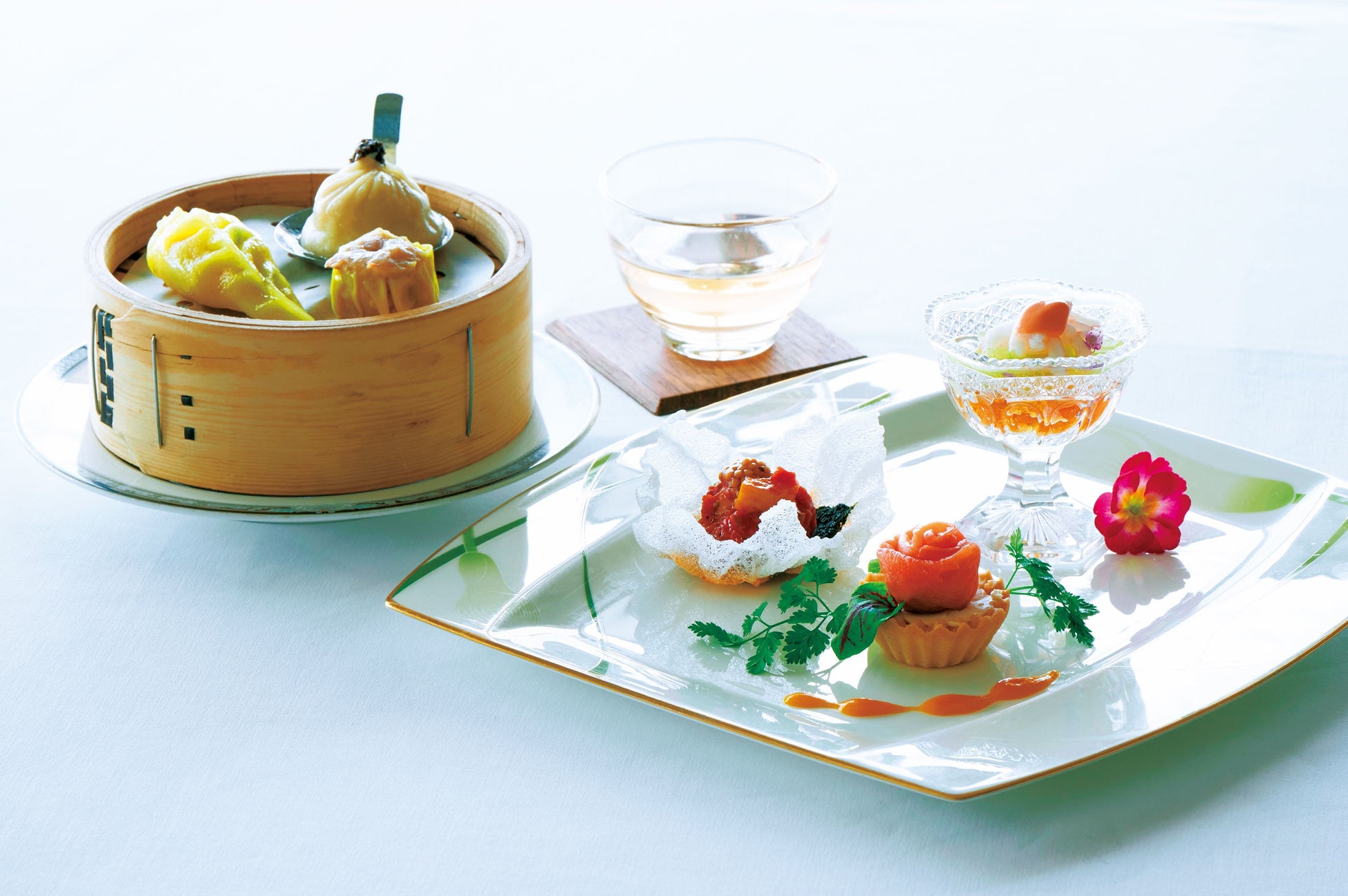 68F 中国料理「皇苑」では、「天空のチャイニーズアフタヌーンティー“南国フルーツと盛夏の彩(あや)”」を販売。洋梨に見立てたパイナップル餡の揚げ餅やライチ大福など、“南国フルーツ”を使用したスイーツをご用意。そのほか、豊富な点心を楽しめるのもチャイニーズアフタヌーンティーの魅力です。高層階からの絶景とともに、非日常のひとときをお過ごしいただけます。