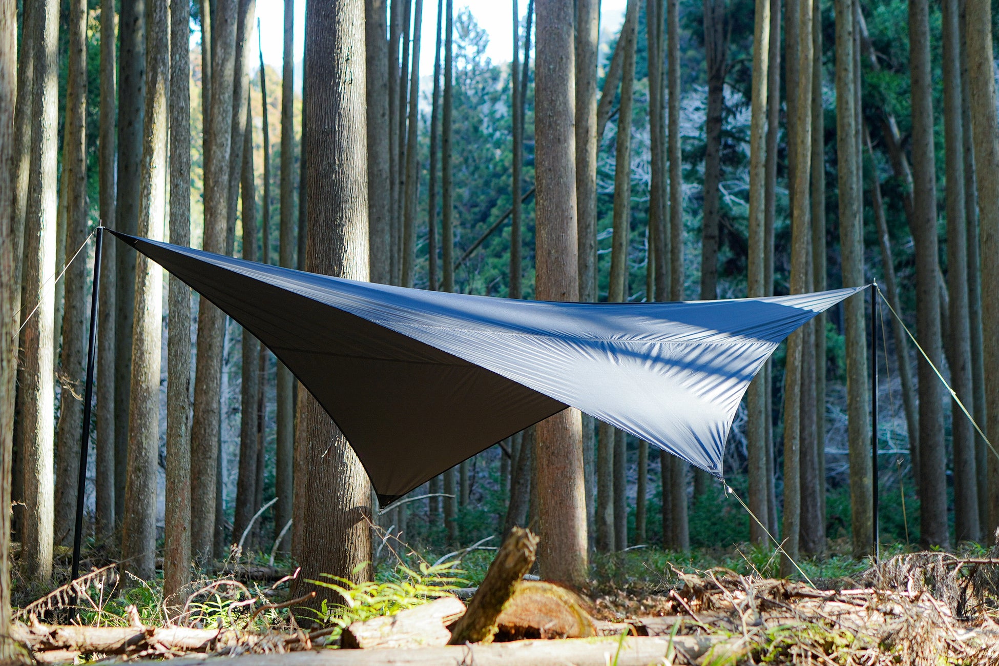 ソロ、2人~3人のキャンプからデイキャンプにおすすめなウイングタープ、テントに連結させるなど、おしゃれなキャンプサイトへと自由にレイアウトできます。タープ本体重量は約1000gと軽量で、収納サイズは280×350mm。バックパックに入れられて、持ち運びにも便利です。