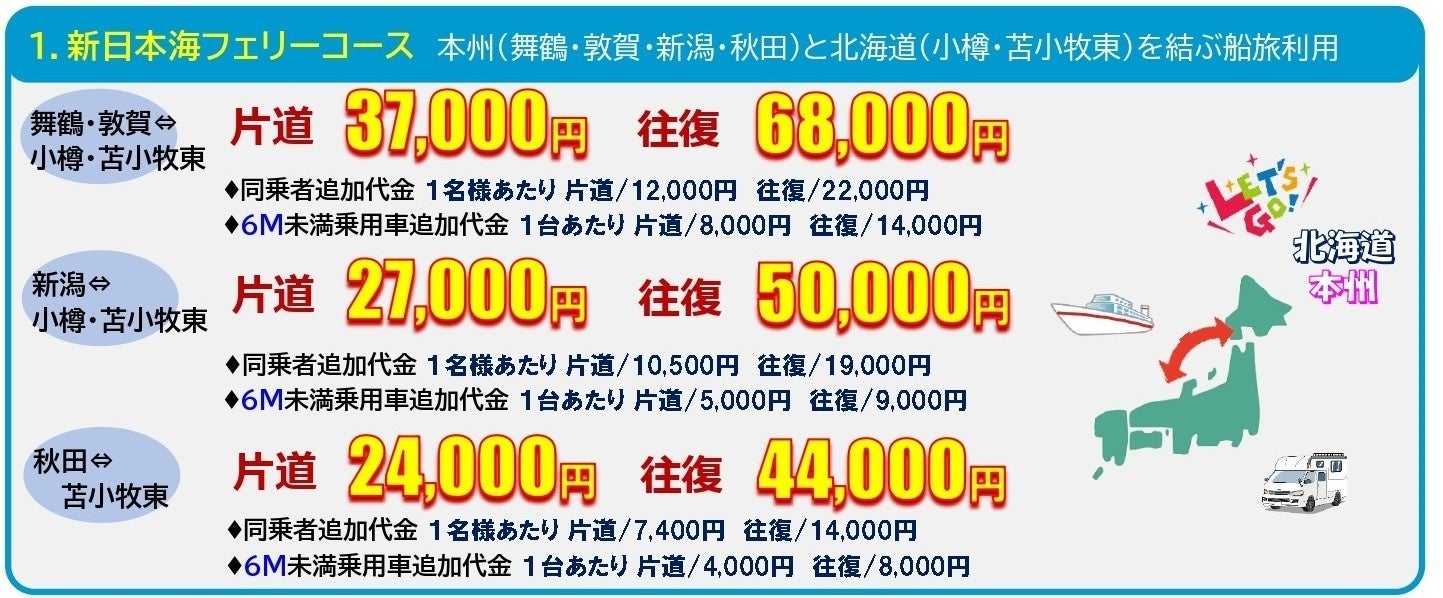 ◆北海道と本州を結ぶ 新日本海フェリー利用の場合