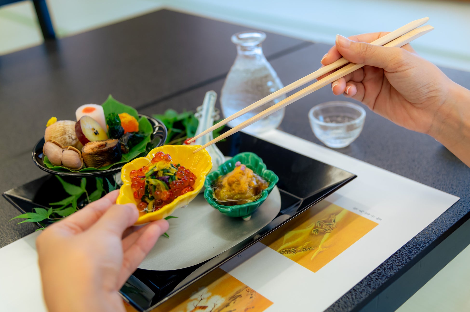 食材にこだわった和食をご提供しており、それぞれに趣の異なる和室の客室でお楽しみいただける部屋食や