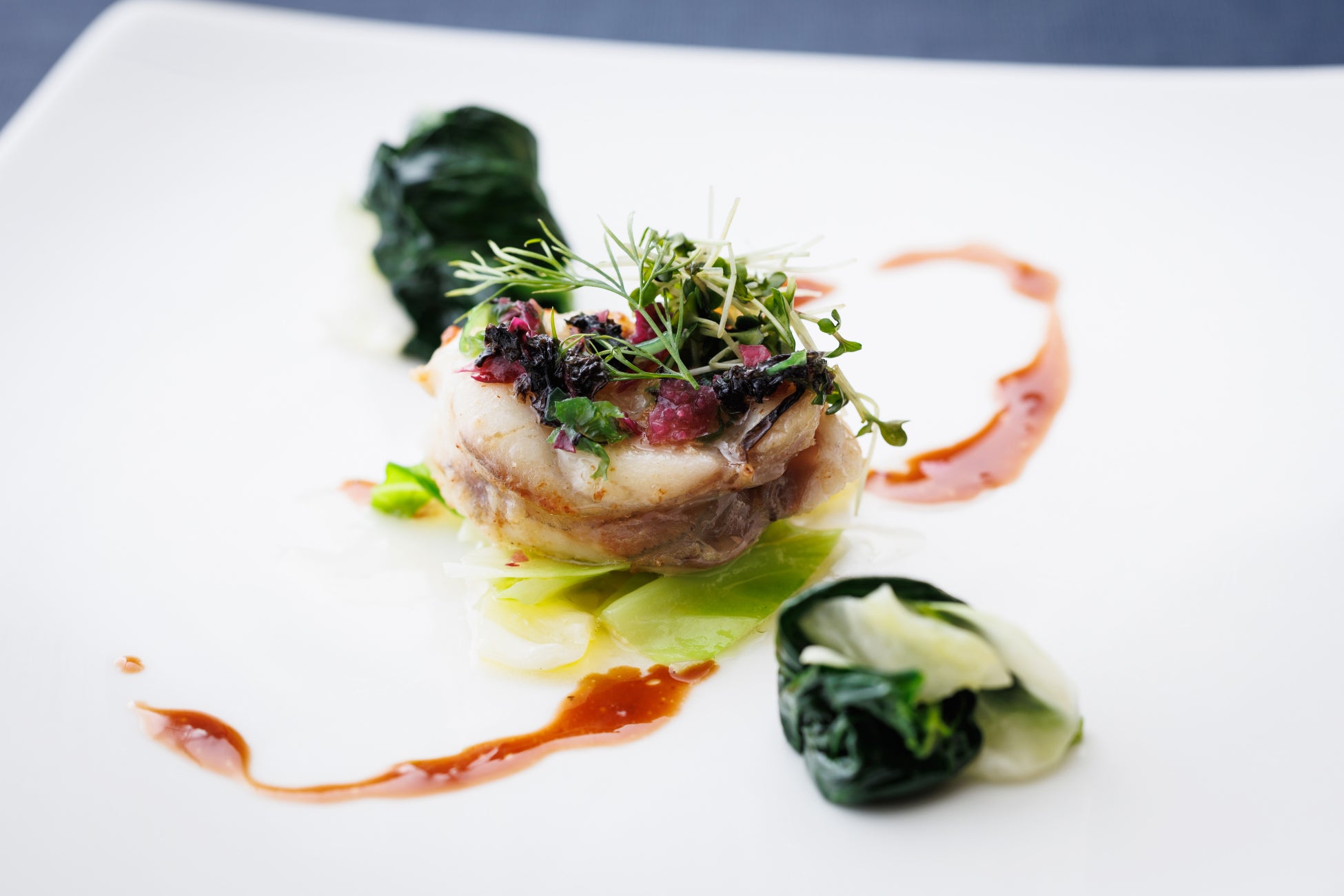 上品な味わいのアンコウにやさしく火入れをすることで、ふっくらとした食感に仕上げています。香ばしいバターと磯の香りのする海の恵みの一品です。