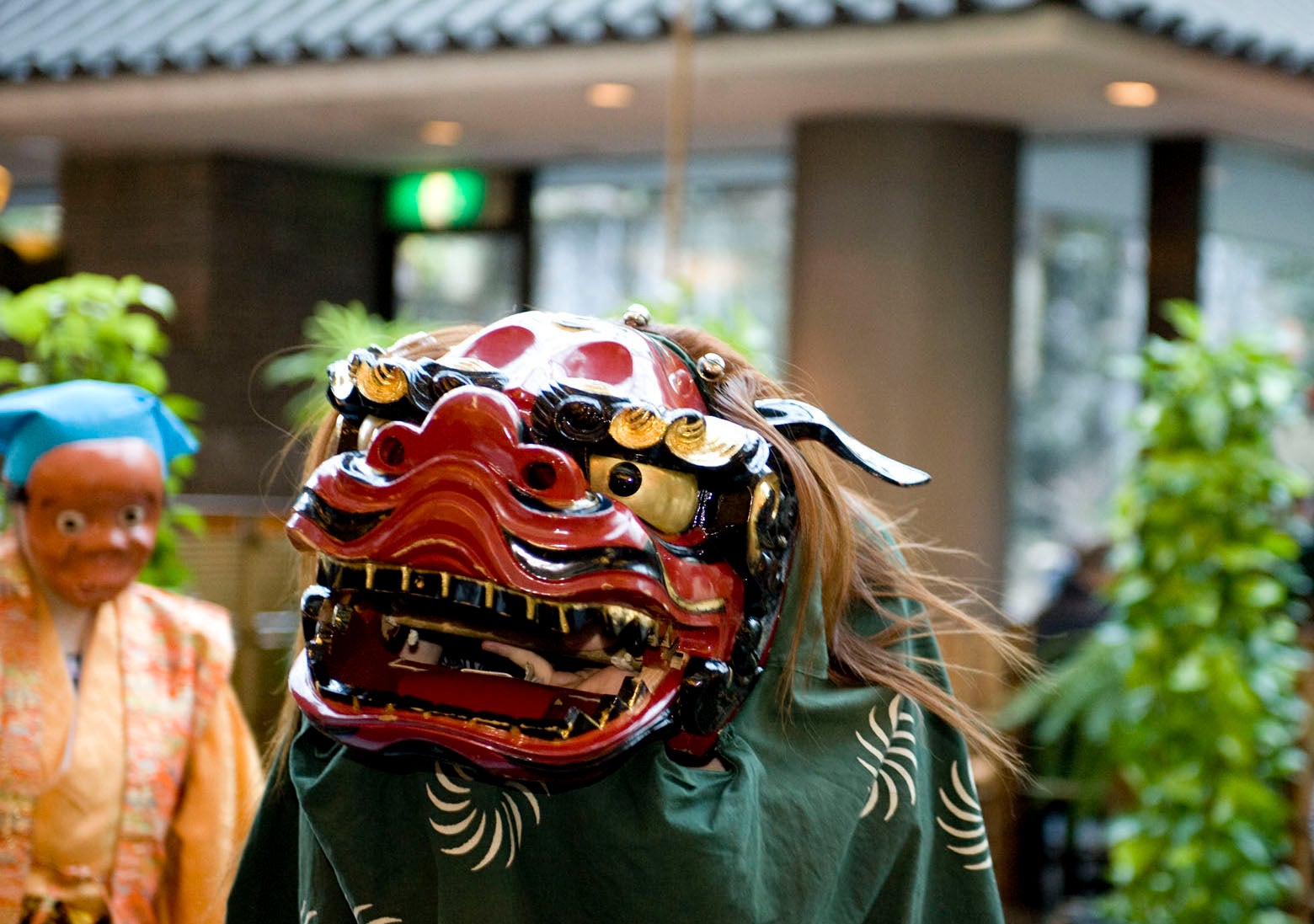目黒東が丘保存会による笛や太鼓のお囃子と獅子舞の活気が、賑やかな新年を演出いたします。