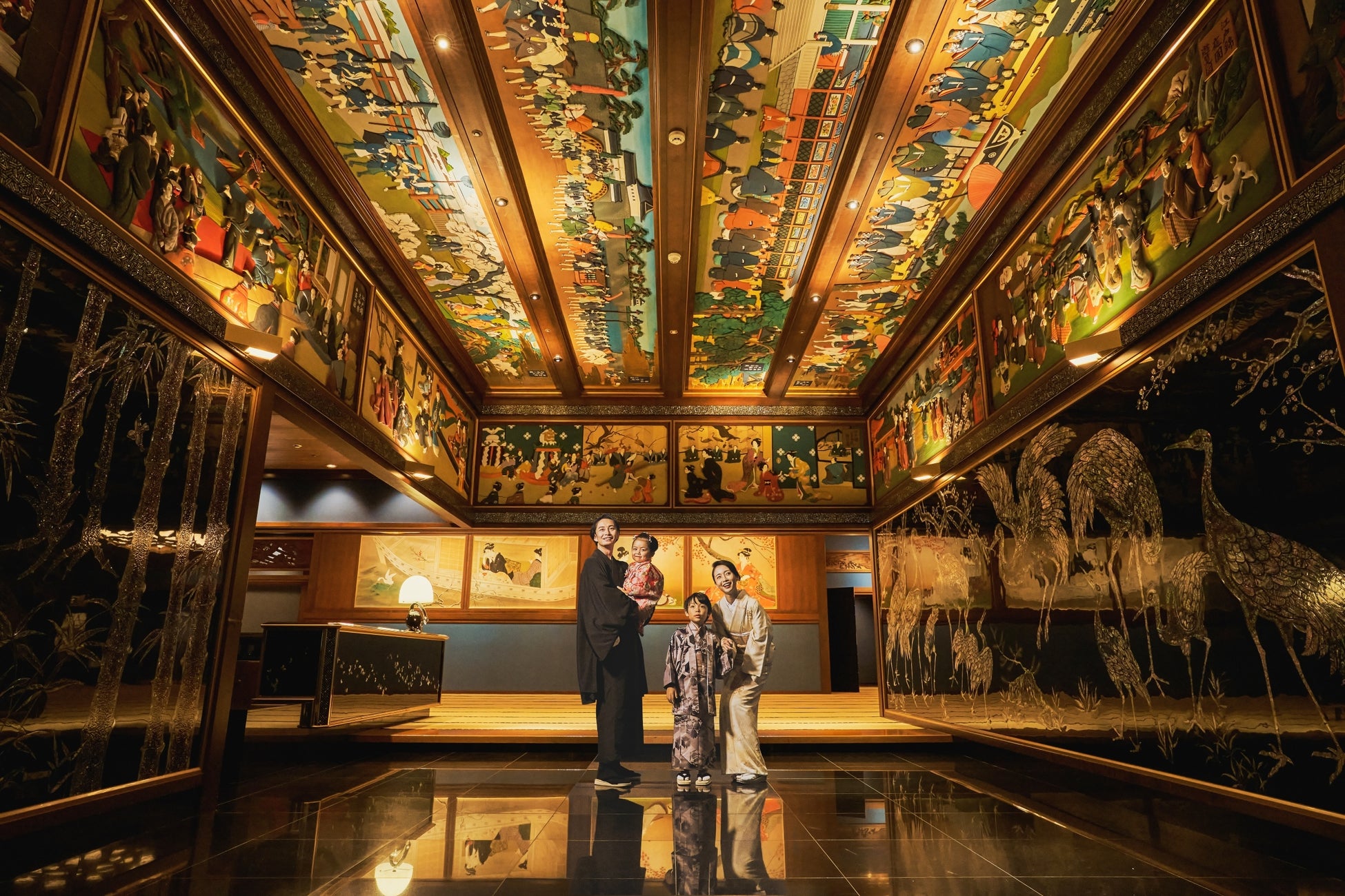 昭和6年に開業したホテル雅叙園東京の前身・目黒雅叙園の正面玄関を彩っていた美術工芸品を移築・再現した和室宴会場玄関を特別公開し、プロカメラマンによる記念撮影を承ります。