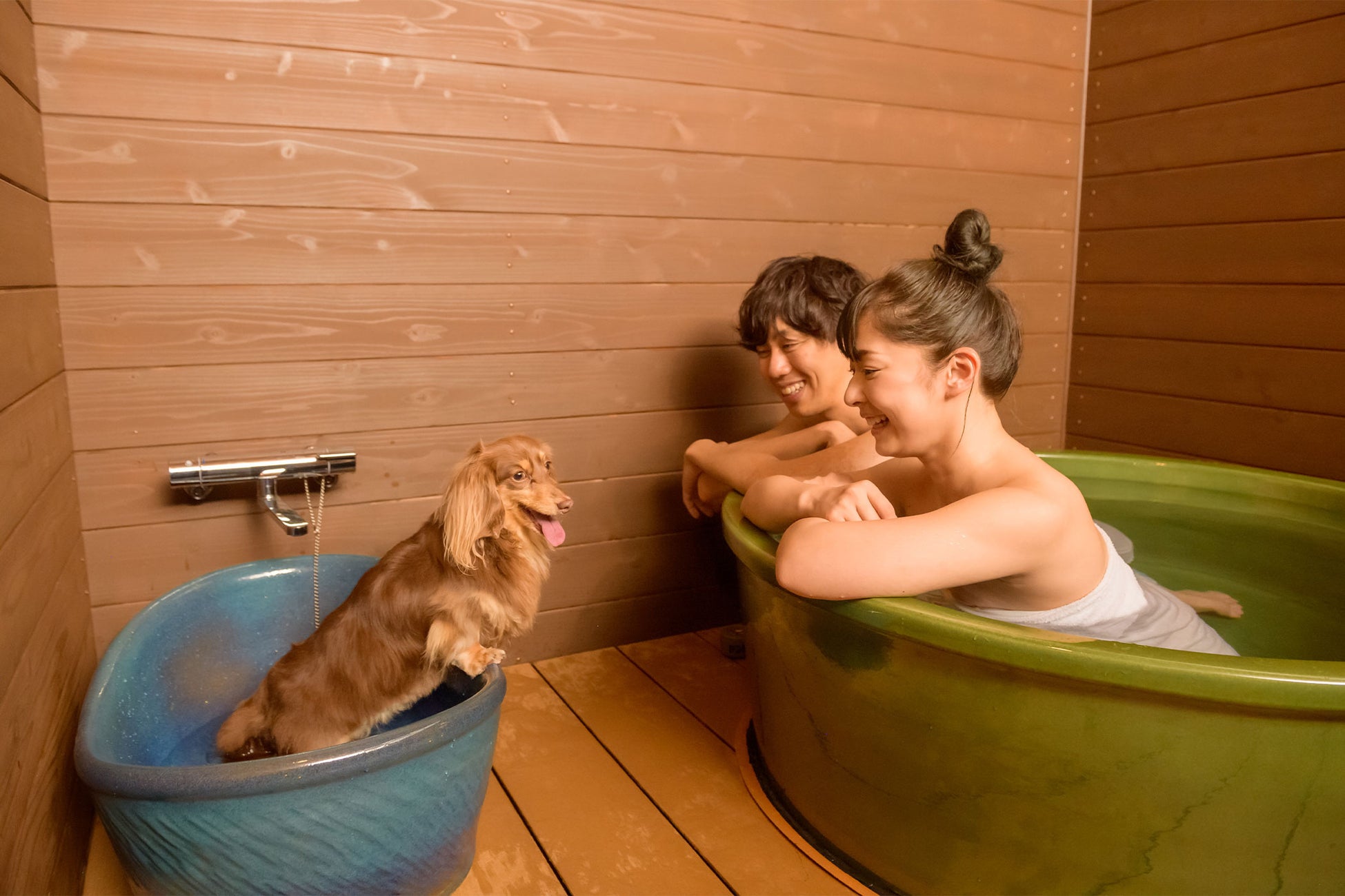 外の景色が楽しめる日中の利用も、静寂を楽しむ夜の時間もおすすめ。また、わんちゃんと一緒に楽しめるお風呂や貸切テントサウナを楽しめる施設もございます。
