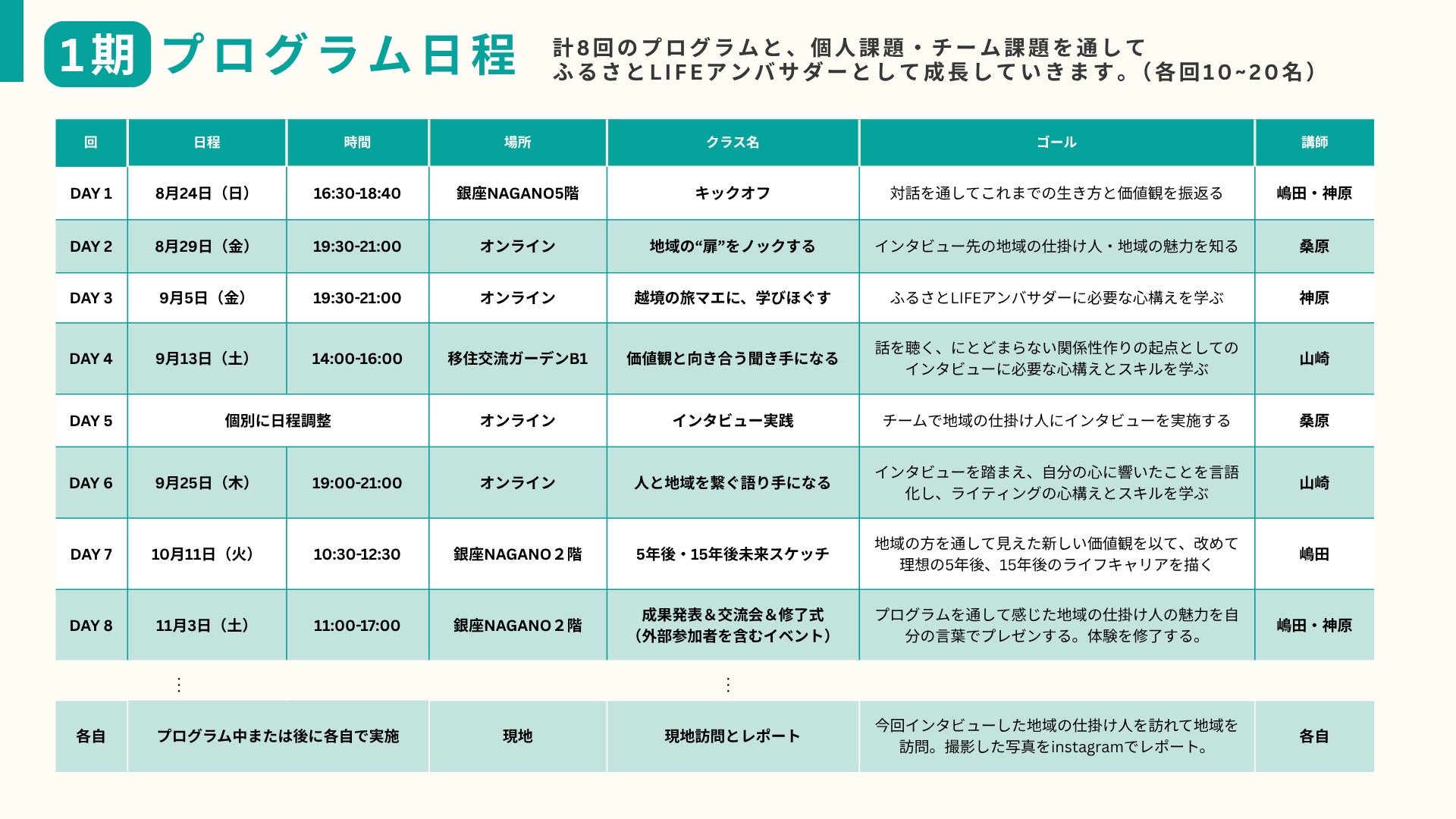 開催形式: 東京都内(銀座NAGANO)およびオンライン開催(全8回+任意の現地訪問)