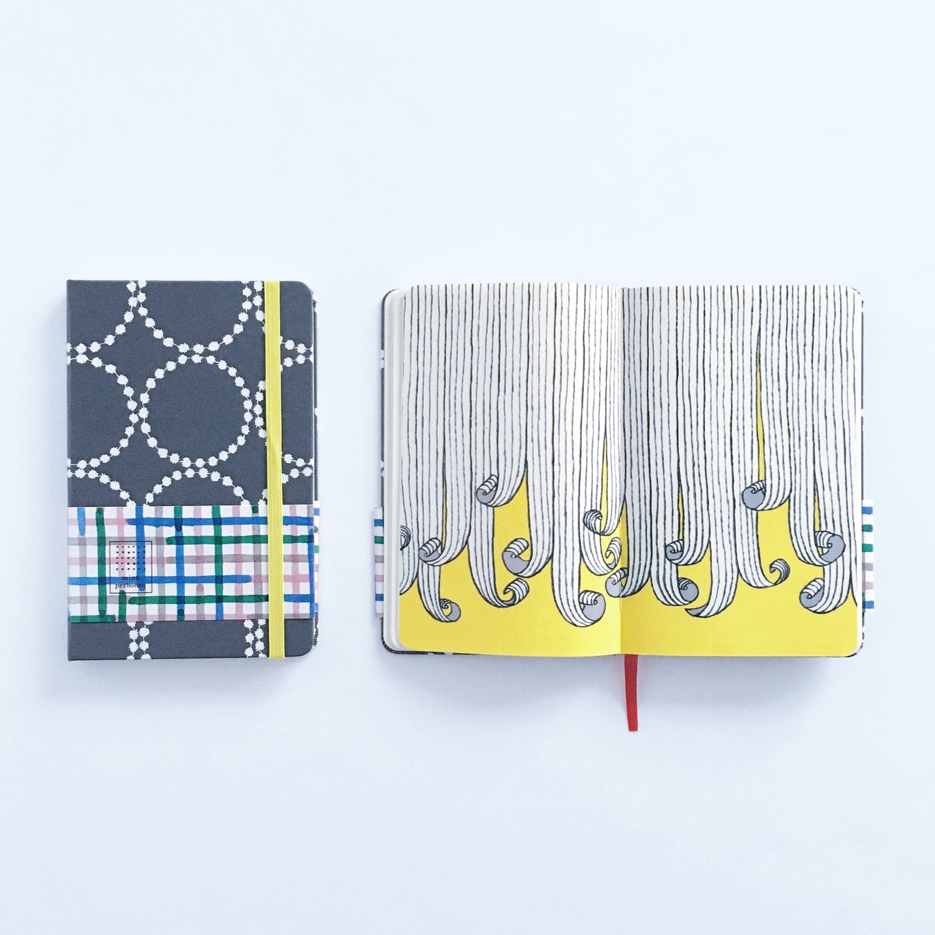 内側のページには色彩豊かな“swing”のテキスタイルやminä perhonenが毎週配信している「letter」のテキストがしのばされた特製ノートです。