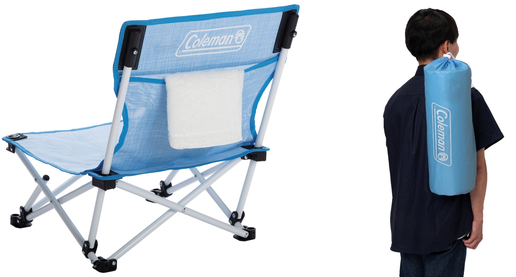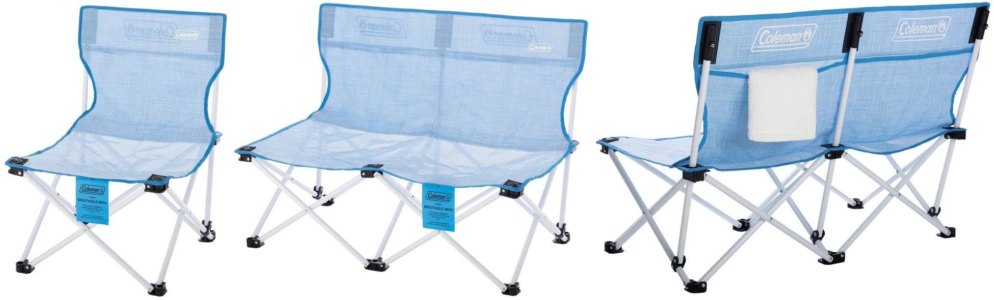 軽量コンパクトで使い勝手の良い定番コンパクトチェアを、夏仕様に仕上げたモデルです。メッシュシートになったことでお手入れもしやすく、より手軽さがアップしました。「ファンチェアダブルメッシュ(クリスタルブルー)」はシングルタイプの「ファンチェアメッシュ(クリスタルブルー)」が2つ横に連なった形状で、家族や友人と視線や会話を自然に共有できる横並びの快適さがポイントです。プールなどのウォーターアクティビティはもちろん、スポーツ観戦や花火大会など、隣り合って座りたいシーンで活躍します。
