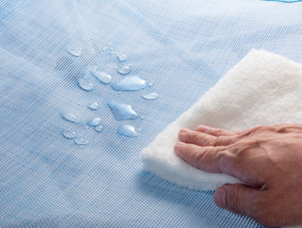 通気性の高いメッシュ素材を採用しており、暑い時期でも蒸れにくく快適に使用できます。また、水濡れに強くお手入れも簡単なため、プールサイドやビーチなどの水辺シーンでも安心です。