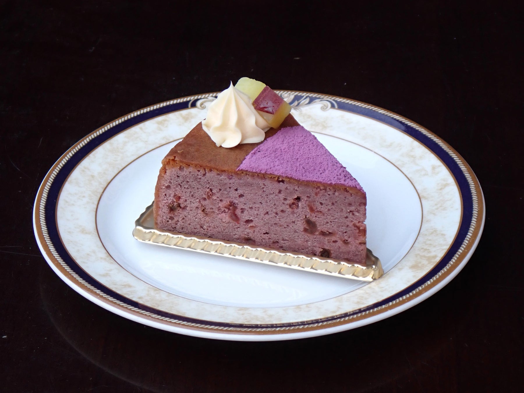 また、これまで当館の喫茶室では、「リーガロイヤルホテル京都」ご協力のもと、展覧会にちなんだオリジナルスイーツメニューを提供してきました。 開館30周年を記念し、もう一度食べたい!とのよび声高いスイーツが再び登場します。会期中は第一弾として、モネの作品をイメージした「アイリス・ケーキ」をご提供します。また、「共鳴 河井寬次郎×濱田庄司」の前期である3月20日から5月31日は河井寬次郎の作品をイメージした「ガトー・トリコロール」を、 6月3日から始まる後期展示の期間には濱田庄司のスリップウェアをイメージしたケーキなども登場予定です。どうぞお楽しみに。