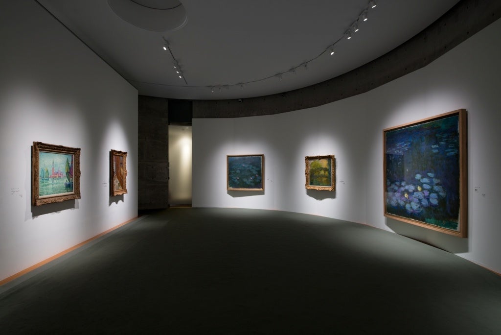 開館30周年を迎える当館には、築100年を超える本館「大山崎山荘」から地下へつづく通路の先に、クロード・モネの《睡蓮》を展示するために1996年開館時に作られた、安藤忠雄氏設計の円形の展示室があります。