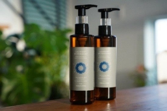 Three Fields、東急リゾートタウン蓼科との協業によるオリジナル洗濯洗剤を開発しました。蓼科のカラマツの間伐材から抽出したアロマオイルに、ラベンダーの天然精油を組み合わせた100%植物由来の洗剤で、客室内に設置した洗濯乾燥機でご利用いただけます。