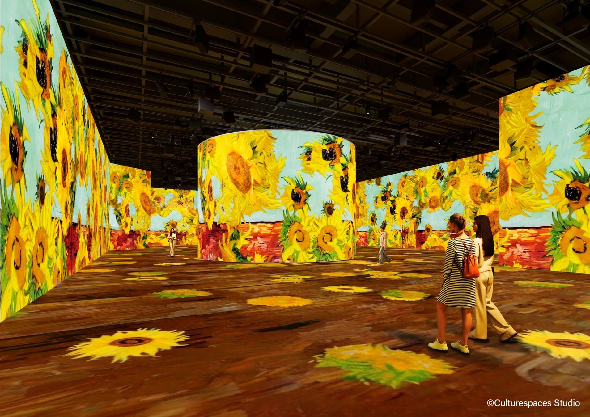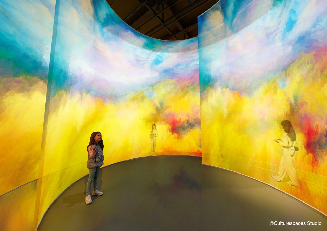 さらに会場内には、106台の高精細プロジェクターと63台のスピーカーを設置。空間全体に広がる壮大な映像と立体的に響き渡る音響が融合し、まるでアートの中に入り込んだかのような、全身を包み込む臨場感あふれる没入体験を提供します。
