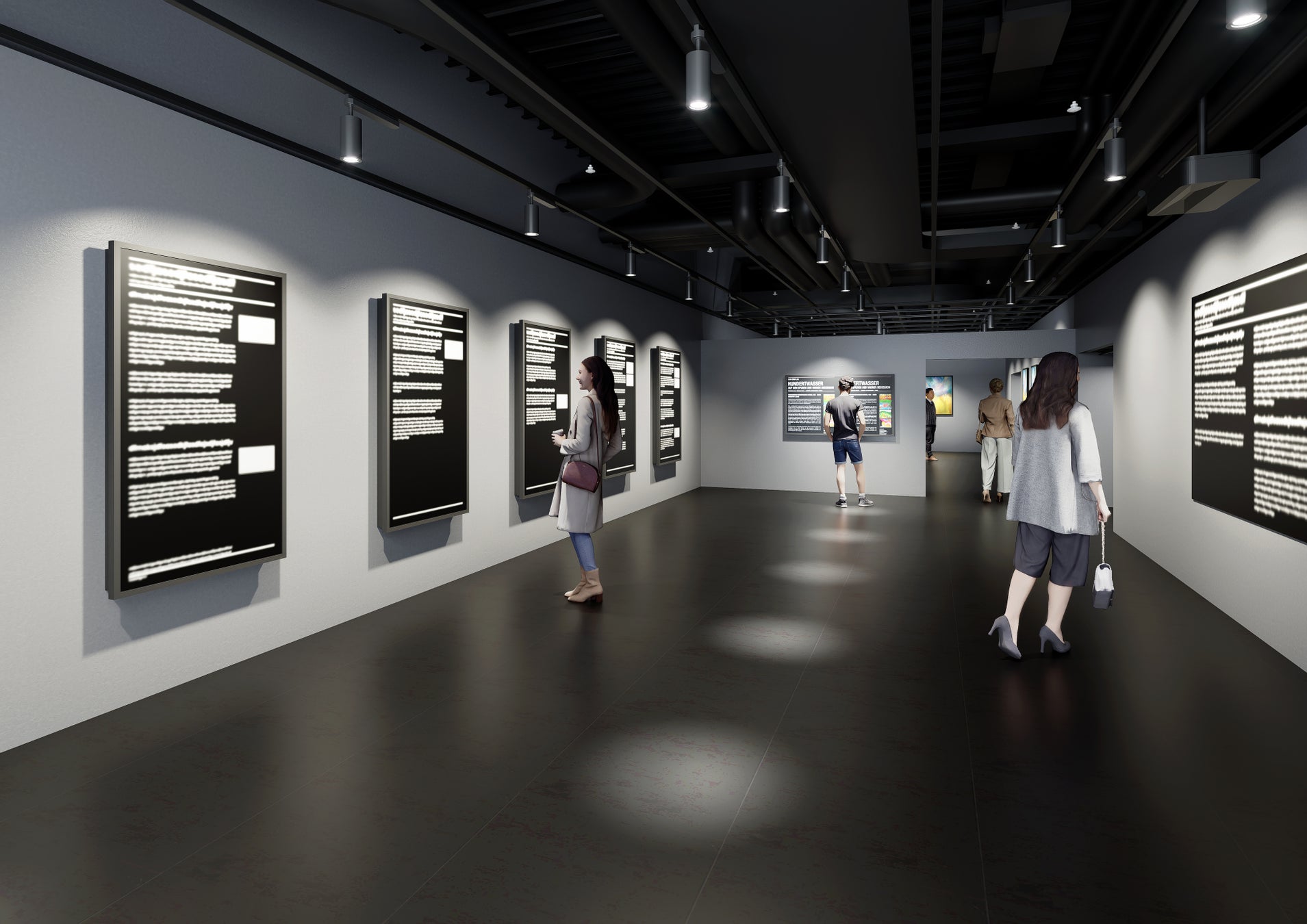 メインホールで上映される作品の背景やアーティストの人生をテキストやムービーで紹介するエリアです。これから始まる没入体験への期待感を高めます。