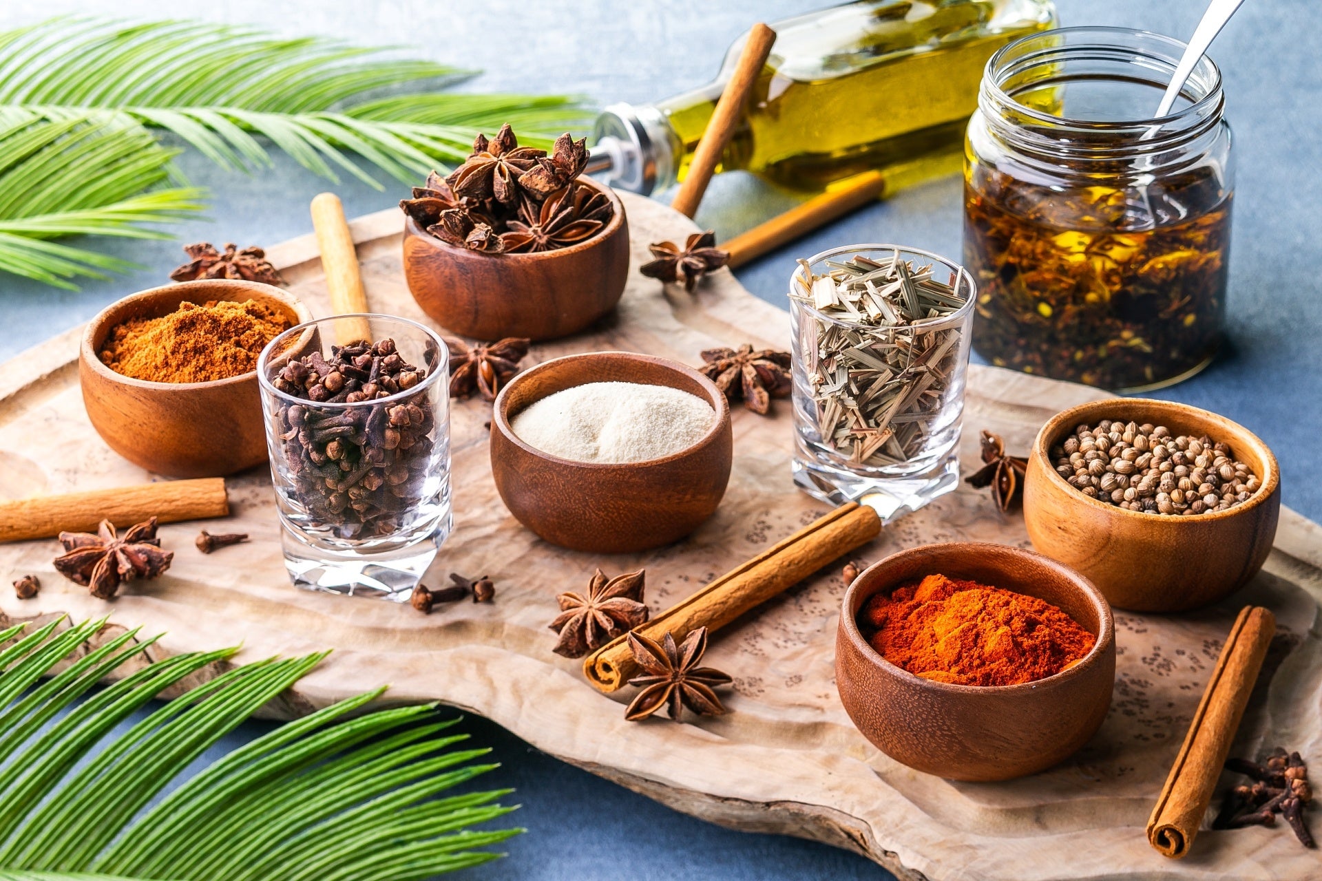 ガーリックパウダー、カイエンヌペッパー、チリパウダー、コリアンダーパウダー、バドゥーヴァン(南インドに由来するスパイスブレンド)を漬け込んだオイルなど、「追いスパイス」を集めたコーナーを設置。辛みを足したり、風味を変えたりといろいろ試して好みの味を見つけることができます。